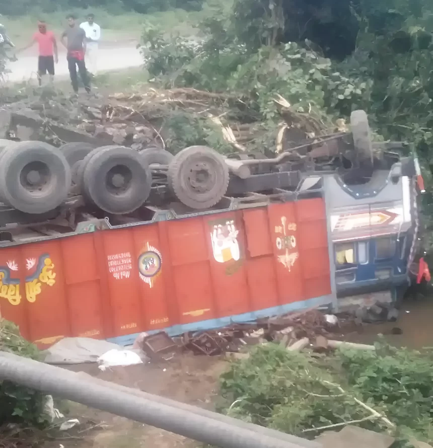 शाम करीब 6:00 बजे मेघातरी पुल के पास पहुंचने पर ट्रक चालक का संतुलन बिगड़ गया, जिससे ट्रक पुल से नीचे पलट गया।