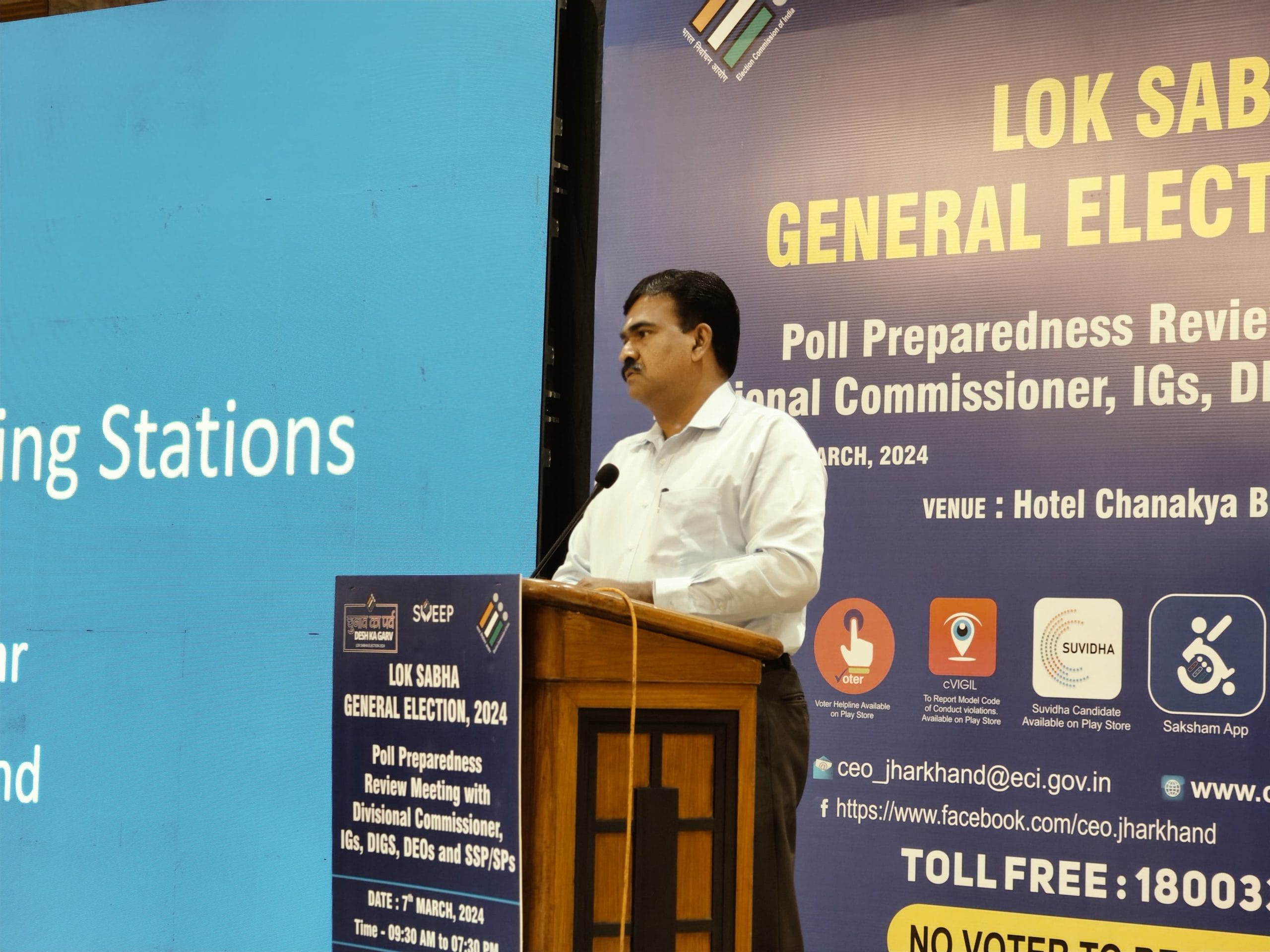 Loksabha Election 2024: लोकसभा चुनाव 2024 के मद्देनजर राज्य के मतदान केन्द्रों पर आवश्यक बुनियादी सुविधाएं सुनिश्चित होने से बेहतर परिणाम सामने आएंगे। मतदाता मतदान केंद्र पर ज्यादा से ज्यादा पहुंचेंगे। इससे मतदान प्रतिशत बेहतर हो सकेगा। इसके लिए सभी को सकारात्मक सोच के साथ आपसी समन्वय से काम करने की आवश्यकता है। निर्वाचन कार्य में सभी ईमानदारी पूर्वक कर्तव्य निर्वहन करें। सभी जिलों के जिला निर्वाचन पदाधिकारी अपने-अपने जिले में चल रहे निर्वाचन से संबंधित कार्यों को ससमय पूर्ण करें। निर्वाचन के कार्य में किसी प्रकार की कोताही अक्षम्य है। यह बातें झारखंड के मुख्य निर्वाचन पदाधिकारी श्री के.रवि कुमार ने कहीं। वे आज लोकसभा चुनाव 2024 के अंतर्गत अबतक की गई तैयारियों को लेकर रांची के एक होटल में आयोजित राज्यस्तरीय समीक्षा बैठक को संबोधित कर रहे थे। बैठक में जिलों के प्रमंडलीय आयुक्त, आईजी, डीआईजी,जिला निर्वाचन पदाधिकारी-सह- उपायुक्त, वरीय पुलिस अधीक्षक, पुलिस अधीक्षक,निर्वाचक निबंधन पदाधिकारी आदि निर्वाचन कार्य से जुड़े वरीय पदाधिकारी उपस्थित थे।