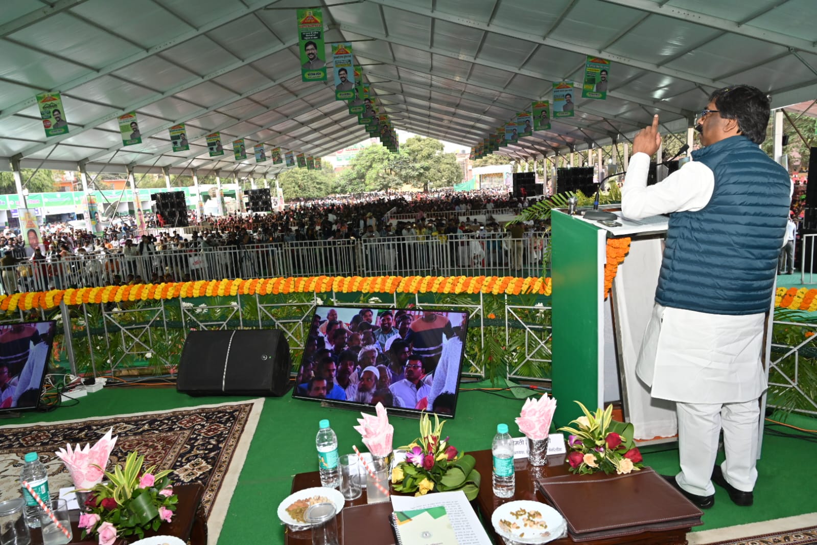 Giridih: गांव किसी भी राज्य के जड़ होते हैं। गांव सशक्त होगा तभी राज्य मजबूत होगा। सरकार की योजनाएं ग्रामीण अर्थव्यवस्था की मजबूती में महत्वपूर्ण भूमिका निभाएगा। इस कड़ी में “आपकी योजना, आपकी सरकार, आपके द्वार” कार्यक्रम आयोजित किया जा रहा है। वर्तमान सरकार के गठन से पूर्व ऐसा किसी सरकार ने नहीं किया था। आज पदाधिकारी आपकी समस्या का समाधान आपके द्वार पर कर रहें हैं। चंद घंटों में आपकी समस्याओं का समाधान हो रहा है। राज्य भर के पंचायत और गांव में शिविर का आयोजन हो रहें हैं, ताकि अंतिम व्यक्ति को सरकार की योजना का लाभ मिल सके। ये बातें मुख्यमंत्री श्री हेमन्त सोरेन ने कही। मुख्यमंत्री गिरिडीह के झंडा मैदान में आयोजित “आपकी योजना, आपकी सरकार, आपके द्वार” कार्यक्रम को संबोधित कर रहे थे। मुख्यमंत्री श्री हेमन्त सोरेन ने कहा की सरकार आपके द्वार के विगत दो चरणों में लाखों आवेदन प्राप्त हुए थे। अगर पूर्व की सरकारों द्वारा लोगों की समस्या का समाधान किया गया होता, तो आज स्थिति कुछ और होती। लेकिन यह आपकी सरकार है, जो आपकी समस्यायों के समाधान हेतु आपके द्वार पहुंच रही है। पदाधिकारी राज्यवासियों की सेवा में लगे हैं, जबकि पूर्व की सरकारों ने इन्हें अपनी सेवा में लगा रखा था।