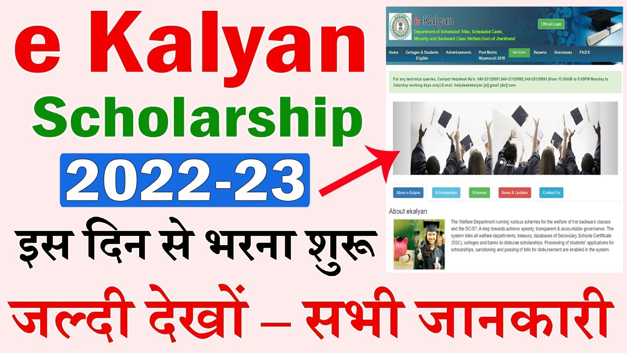 E Kalyan Jharkhand Scholarship 2022-23: झारखंड सरकार के द्वारा अनुसूचित जाति अनुसूचित जनजाति अल्पसंख्यक और पिछड़े वर्गों को या स्कॉलरशिप मुहैया करवाई जाती है विभाग की तरफ से अपने ऑफिशियल वेबसाइट पर ऑनलाइन आवेदन भरने की तिथि घोषित की जा चुकी है विद्यार्थी संबंधित डॉक्यूमेंट के साथ 10मार्च से ऑनलाइन आवेदन कर सकते हैं बता दें कि इस स्कॉलरशिप स्कीम के तहत 11वीं कक्षा से ऊपर के छात्र स्कॉलरशिप के लिए आवेदन कर सकते हैं.