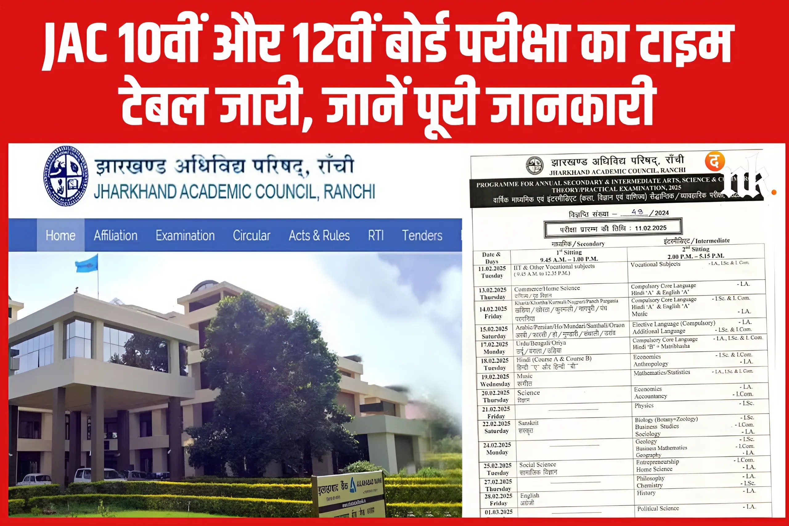 JAC Board Exam Time Table 2025: JAC 10वीं और 12वीं बोर्ड परीक्षा का टाइम टेबल जारी, जानें पूरी जानकारी 1