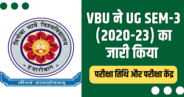 VBU Exam Notice: विनोबा भावे विश्वविद्यालय हजारीबाग (VBU HAZARIBAGH) ने स्नातक लिखित परीक्षा Semester- 3 का तिथि प्रकाशित कर दिया है।