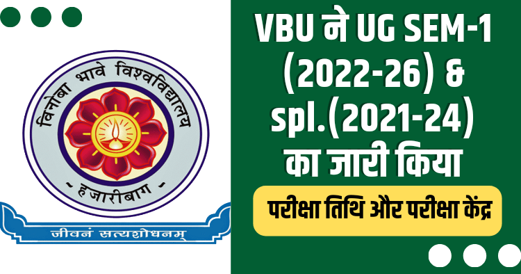 VBU Exam Notice: विनोबा भावे विश्वविद्यालय हजारीबाग (VBU HAZARIBAGH) ने स्नातक लिखित परीक्षा Semester- 1 New Session FYUG (2022-26) और Old Session (2021-24) की तिथि प्रकाशित कर दिया है।
