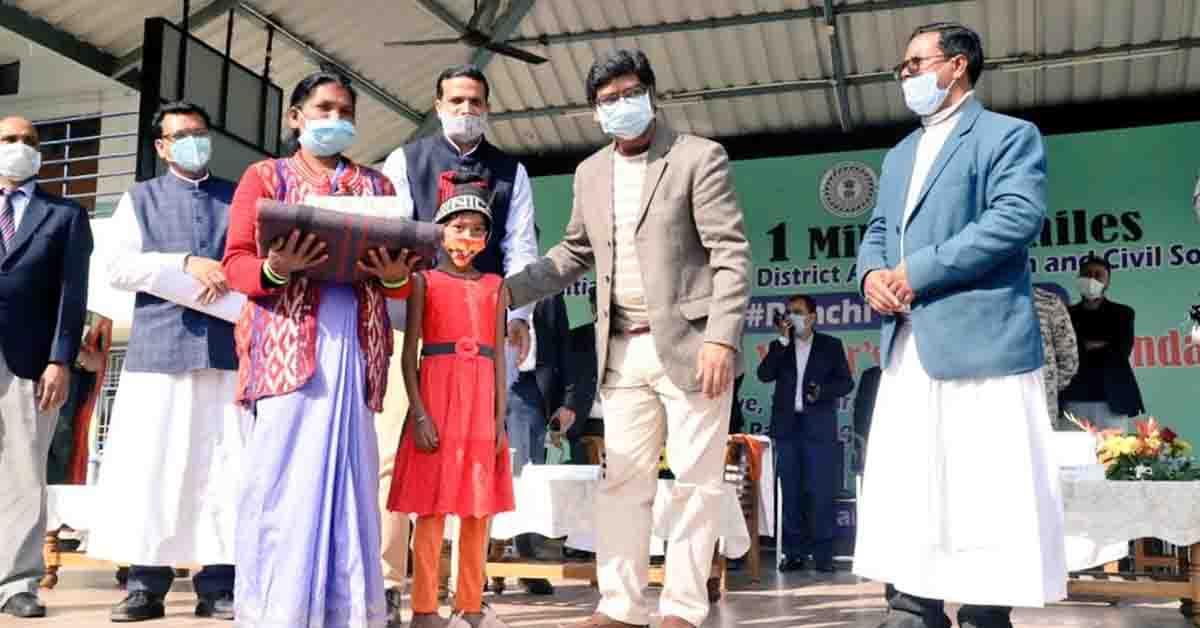 मुख्यमंत्री हेमन्त सोरेन ने कहा कि कोरोना वैश्विक महामारी तथा ठंड के इस मौसम में गरीब, जरूरतमंद और निराश्रितों को मदद करना हम सभी का कर्तव्य है। ऐसे वर्ग के लोगों के लिए ठंड का मौसम काफी पीड़ादायक होता है। इन्हें सामाजिक सहयोग एवं सुरक्षा देना हम सबकी जिम्मेवारी है। जरूरतमंदों को आवश्यकतानुरूप साधन उपलब्ध कराने हेतु राज्य सरकार प्रतिबद्ध है। उक्त बातें मुख्यमंत्री ने आज संत जेवियर स्कूल डोरंडा में “मिशन वन मिलियन स्माइल्स” द्वारा आयोजित कंबल वितरण कार्यक्रम को संबोधित करते हुए कहीं।