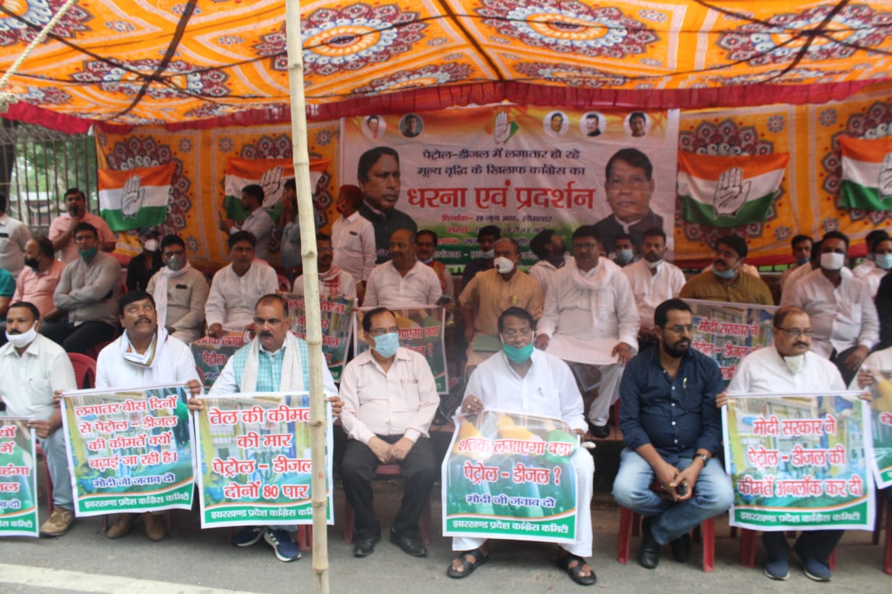 धरना-प्रदर्शन कार्यक्रम में झारखंड कांग्रेस के प्रदेश अध्यक्ष डॉ रामेश्वर उरांव, आलोक दुबे, अजय नाथ शाहदेव समेत कई कांग्रेस नेता मौजूद थे.