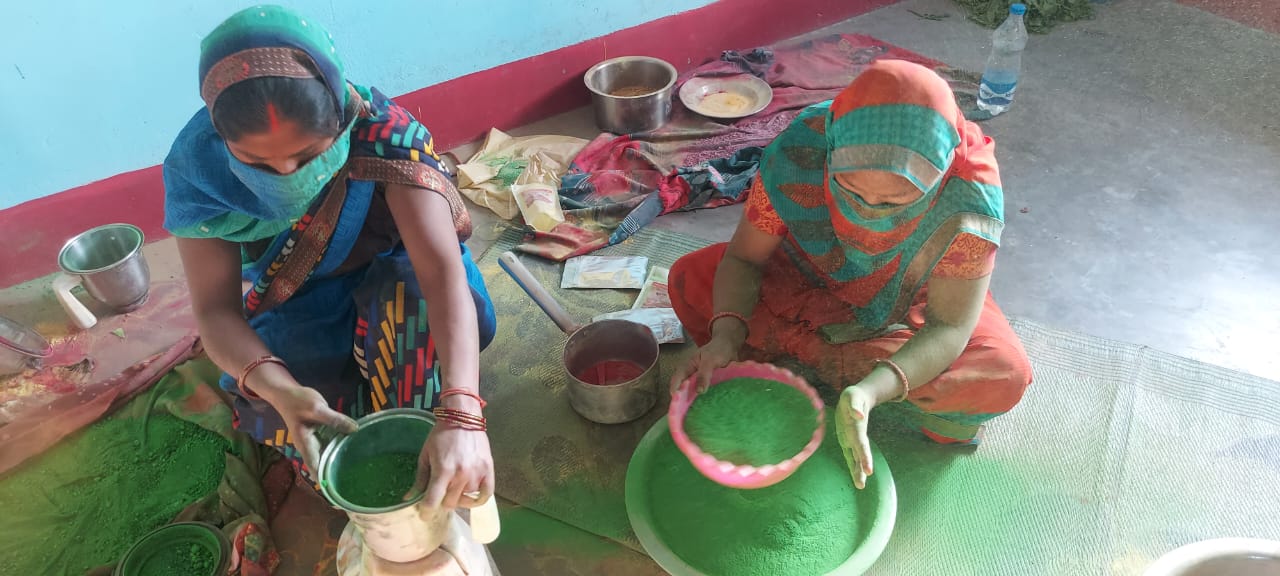 ग्रामीण सेवा केन्द्र दारू की अध्यक्ष राखी देवी बताती हैं कि हर्बल रंगों के निर्माण में प्राकृतिक उत्पादों के अलावे तुलसी और लेमन ग्रास के तेल का भी उपयोग किया जाता है। पलाश ब्रांड के अन्तर्गत हमारे द्वारा निर्मित अबीर गुलाल विगत चार वर्षो से बाजार में आमलोगों के लिए उलपब्ध कराया जा रहा है, जिसे लोगों काफी पंसद कर रहे हैं। त्योहर के अलावे वर्ष के शेष महीनों में भी कई तरह के उत्पादों का प्रोसेस कर बाजार में उपलब्ध कराया जाता है। जिससे महिलाओं को जीविकोपार्जन हेतु रोजगार के साथ आर्थिक संबलता मिल रही है।
