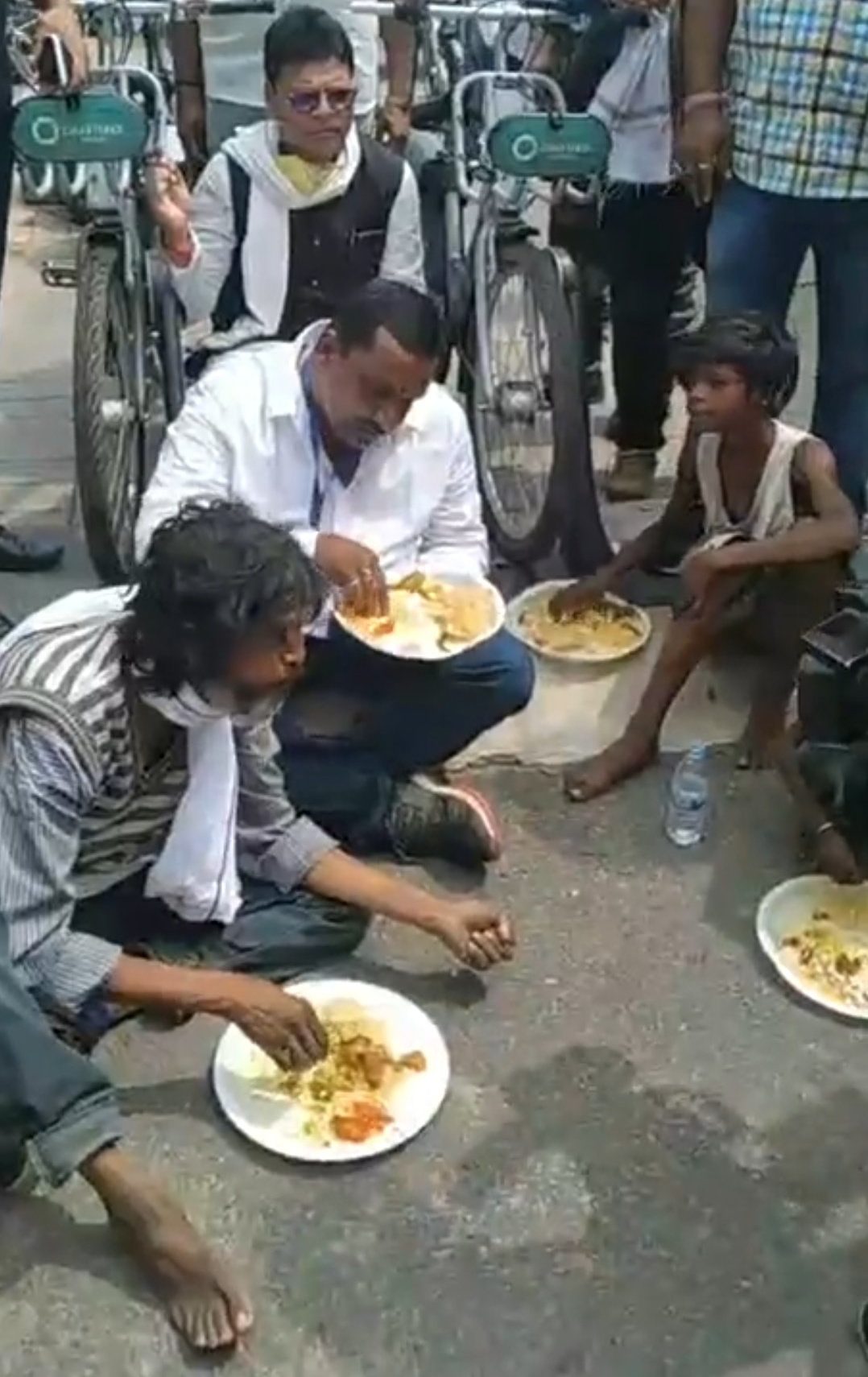 स्वास्थ्य मंत्री बन्ना गुप्ता का अनोखा अंदाज, राहुल गाँधी के जन्मदिन के मौके पर गरीबों के साथ जमींन पर बैठ खाया खाना