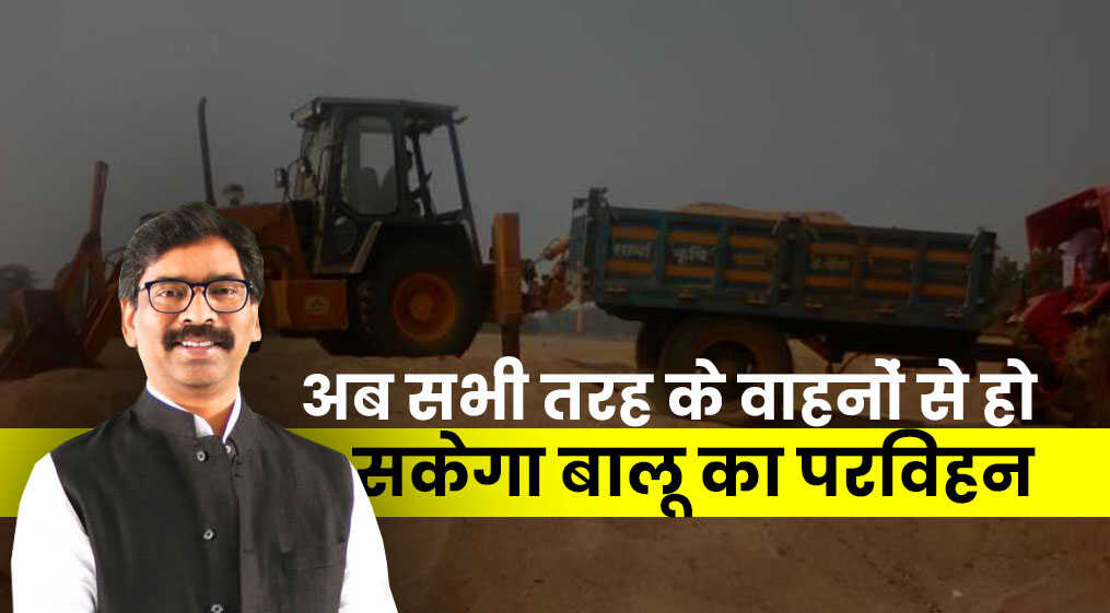 झारखंड की हेमंत सरकार ने कोरोना महामारी के बीच उत्पन्न स्थिति को देखते हुए फैसला लिया था कि बालू के भंडारण स्थल से बालू का परिवहन सिर्फ ट्रैक्टर के माध्यम से होगा जिसे निरस्त करते हुए सभी वाहनों से बालू के परिवहन को अनुमति दे दी गयी है.