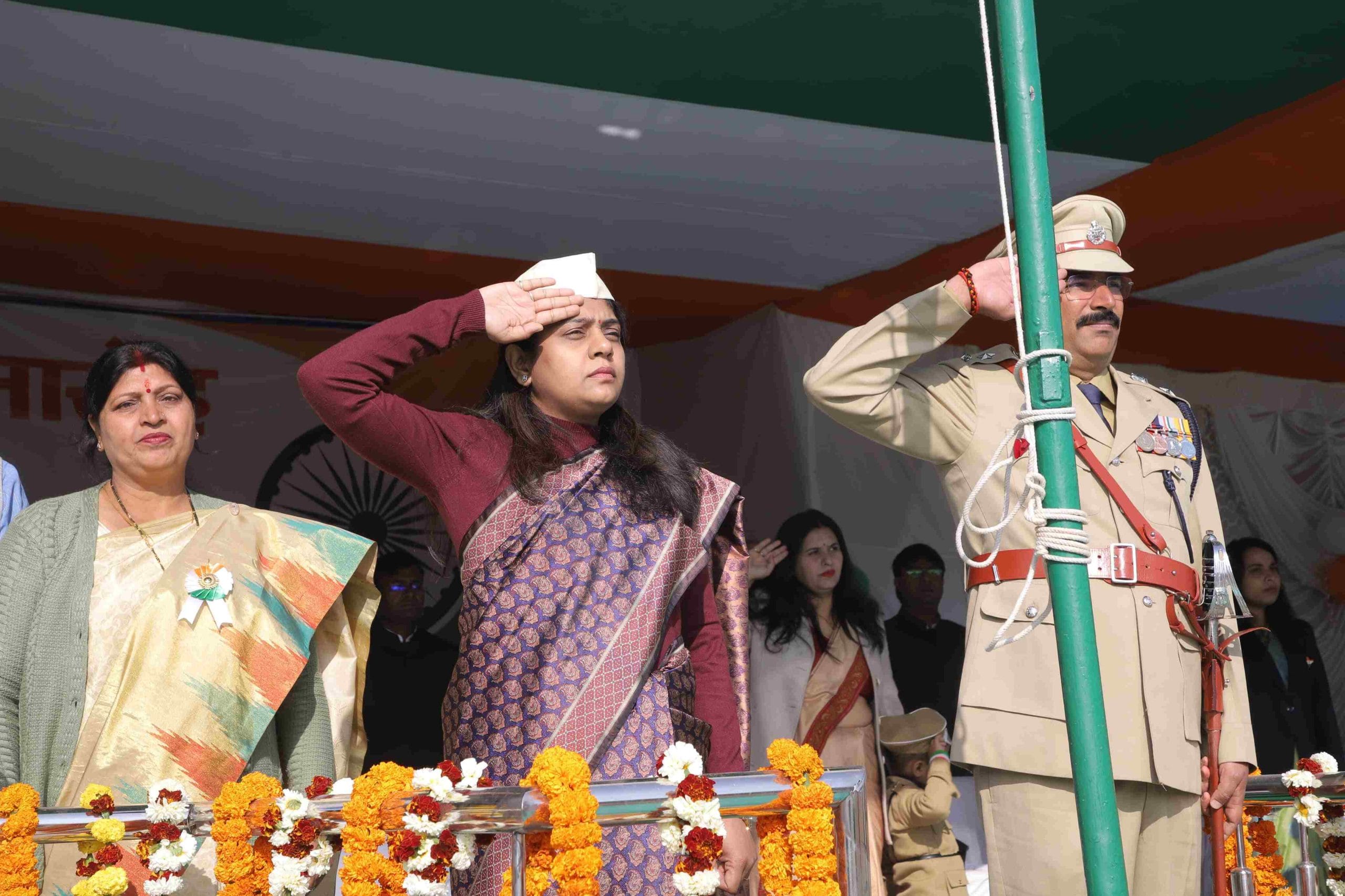 Koderma: 26 जनवरी 2024 गणतंत्र दिवस के पावन अवसर पर उपायुक्त मेघा भारद्वाज ने मुख्य कार्यक्रम स्थल बागीटांड़ स्टेडियम पर झंडोत्तोलन किया। उपायुक्त द्वारा सर्वप्रथम गणतंत्र दिवस समारोह में पुलिस बल एवं एन.सी.सी कैडेट तथा विद्यालय के छात्र छात्राओं द्वारा मार्चपास्ट को सलामी दिया गया। उपायुक्त श्रीमती मेघा भारद्वाज ने जिले की उपलब्धियों के बारे में बताते हुए कहा कि