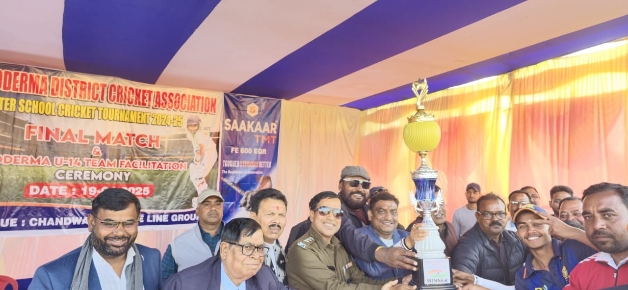 Koderma: कोडरमा जिला क्रिकेट एसोसिएशन के तत्वावधान में खेले जा रहे इंटर स्कूल क्रिकेट टूर्नामेंट का फाइनल मैच सेक्रेड हार्ट स्कूल झुमरी तलैया और आदर्श प्लस टू उच्च विद्यालय मधवाटांड़ के बीच रविवार को चंदवारा स्थित पुलिस लाइन मैदान में संपन्न हुआ। फाइनल मैच के पारितोषिक वितरण समारोह को संबोधित करते हुए कोडरमा एसडीपीओ अनिल कुमार सिंह ने कहा कि जिला क्रिकेट एसोसिएशन द्वारा उपलब्ध कराए गए बेहतर मंच का खिलाड़ी भरपूर फायदा उठा रहे हैं। कोडरमा के खिलाड़ियों ने अपनी पहचान के बल पर राज्य स्तर पर अपनी धमक दिखाई है। इस जिले में प्रतिभा की कोई कमी नहीं है। उन्होंने कोडरमा जिला क्रिकेट एसोसिएशन द्वारा किए जा रहे हैं प्रयास की सराहना की। समारोह को संबोधित करते हुए समाज सेवी और व्यवसायी पप्पू सोनी तथा बार एसोसिएशन के अध्यक्ष जगदीश लाल सलूजा ने कहा की इस इस प्रकार के मंच से शहरी क्षेत्र के साथ-साथ ग्रामीण क्षेत्र के खिलाड़ियों को भी आगे आने का अवसर प्राप्त होता है । ऐसे ही मंच से खिलाड़ी क्रिकेट के क्षेत्र में बहुत आगे तक जा सकते हैं। जिला क्रिकेट एसोसिएशन द्वारा वर्षों से खिलाड़ियों के के लिए ज्यादा से ज्यादा सुविधा मुहैया कराने का भरसक प्रयास किया जाता रहा है। क्रिकेट एसोसिएशन का यह प्रयास सराहनीय है। समारोह को अनील पांडे, विनोद विश्वकर्मा, मनोज सहाय पिंकू, अनिल सिंह, और सुनील जैन ने भी संबोधित करते हुए खिलाड़ियों को शुभकामनाएं दी। समारोह की अध्यक्षता केडीसीए के अध्यक्ष अमरजीत सिंह छाबड़ा व संचालन दिनेश सिंह और जय पांडे ने संयुक्त रूप से की।