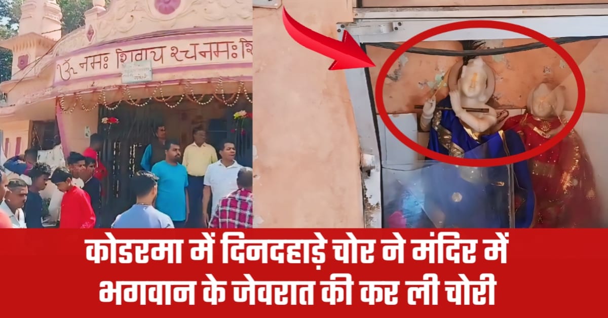 Koderma News: दिनदहाड़े चोर ने मंदिर में भगवान के जेवरात की कर ली चोरी
