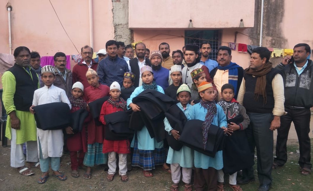 झारखण्ड मुक्ति मोर्चा के राजमहल से इकलौते सांसद और पार्टी के केंद्रीय उपाध्यक्ष विजय हासदा के निर्देश पर पार्टी के लोगो ने मदरसा में पढ़ने वाले बच्चो के बीच बढ़ते ठण्ड को देख कंबल का वितरण किया।