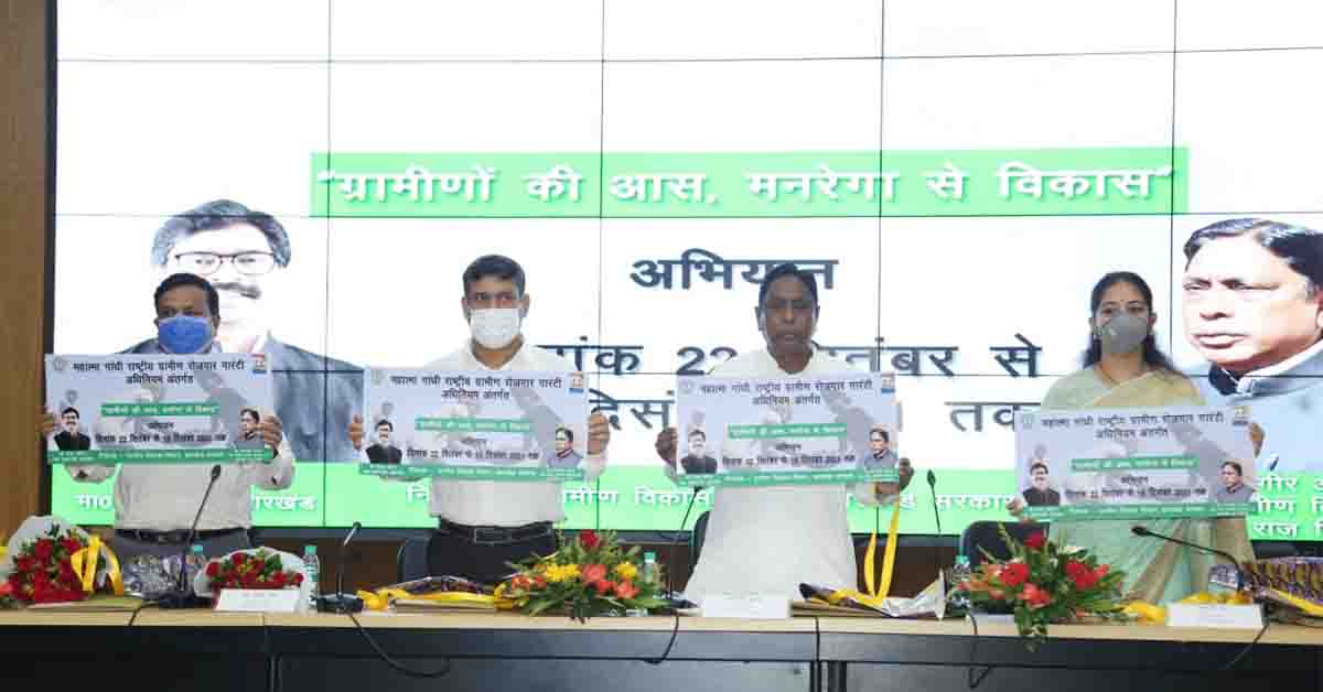 मंत्री ने कहा कि इसी कड़ी में आज मनरेगा अंतर्गत चलने वाले “ग्रामीणों की आस, मनरेगा से विकास” अभियान का शुभारंभ हो रहा है। यह अभियान 22 सितंबर से 15 दिसंबर 2021 तक राज्य के चिन्हित 150 प्रखंडों में चलाया जाएगा। इस अभियान को आवश्यकतानुसार जिलास्तरीय समिति द्वारा राज्य के अन्य प्रखंडों में भी विस्तारित किया जा सकेगा। उन्होंने कहा कि “ग्रामीणों की आस, मनरेगा से विकास” अभियान का मुख्य उद्देश्य नियमित रोजगार दिवस का आयोजन, नियमित ग्राम सभा का आयोजन, इच्छुक सभी परिवारों को ससमय रोजगार उपलब्ध कराना, महिला एवं अनुसूचित जाति/अनुसूचित जनजाति कोटि के श्रमिकों की भागीदारी में वृद्धि करना, प्रति परिवार औसत मानव दिवस में वृद्धि, जॉब कार्ड निर्गत/नवीकरण करना, जॉब कार्ड का सत्यापन करना, प्रत्येक गांव/ टोला औसतन 5 से 6 योजनाओं का निरन्तर क्रियान्वयन करना, पूर्व से चली आ रही पुरानी योजनाओं को पूर्ण करना, प्रत्येक ग्राम पंचायत में पर्याप्त योजनाओं की स्वीकृति, शत-प्रतिशत महिला मेट का नियोजन, एनएमएमएस के माध्यम से मेट द्वारा मजदूरों की उपस्थिति अपलोड करना, जीआइसी बेस्ड प्लानिंग करना है।