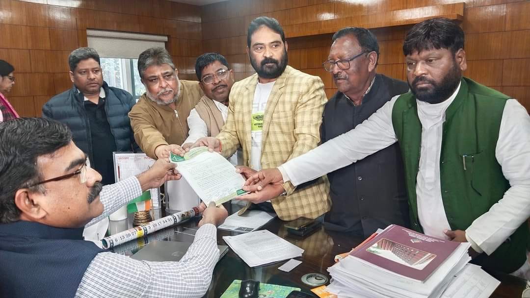 Jharkhand News: झारखंड गुक्ति मोर्चा (झामुमो) ने झारखंड के मुख्य निर्वाचन पदाधिकारी के रवि कुमार को ज्ञापन सौंपा. ज्ञापन के माध्यम से गांडेय विधानसभा में उपचुनाव कराने का आग्रह किया गया. शुक्रवार को ‘भारतीय निर्वाचन आयोग’ के कार्यालय में झामुमो का एक प्रतिनिधिमंडल पहुंचा, जिसमें पार्टी के केंद्रीय महासचिव सुप्रीयो भट्टाचार्य, महासचिव विनोद पांडेय, विधायक नलिन सोरेन, भूषण तिर्की व दिनेश विलियम मरांडी शामिल थे.